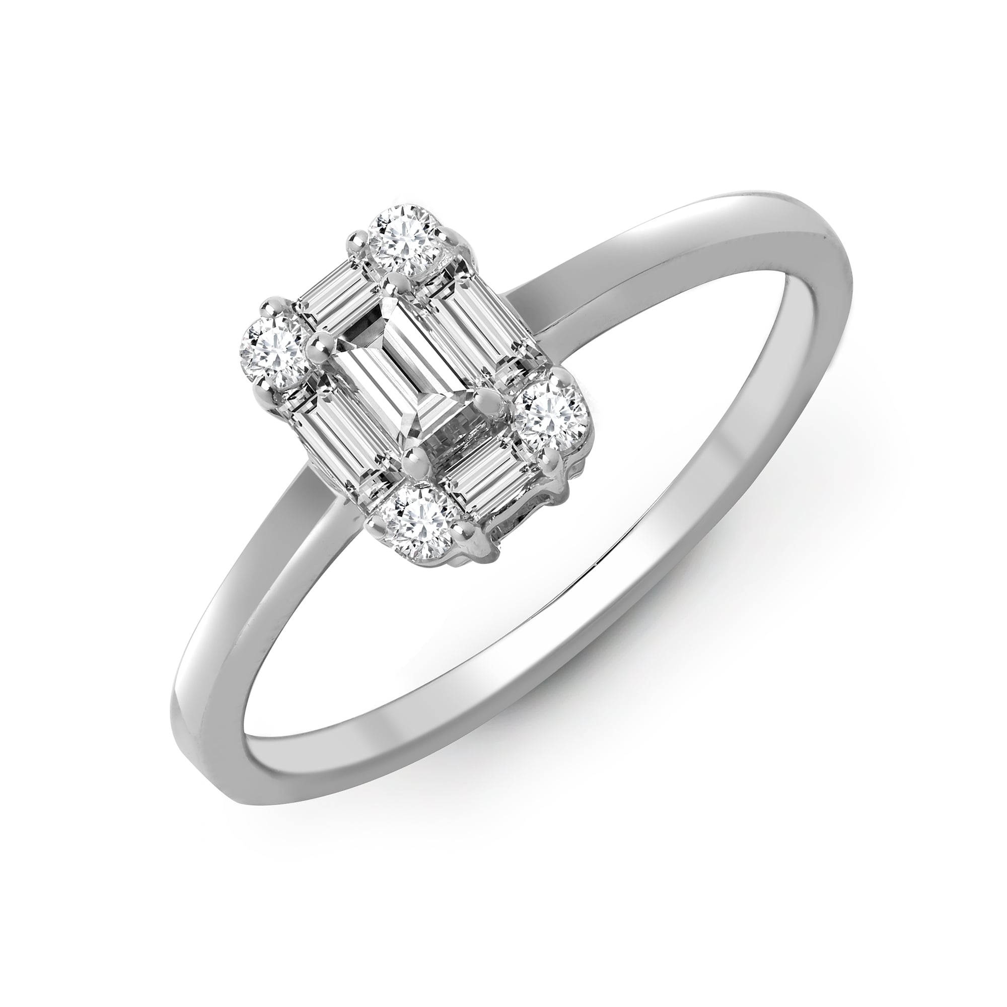 18ct White Gold 0.57ct Diamond Round Brilliant Cut & Baguette Ring