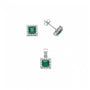 925 Sterling Silver CZ & Emerald Square Earring & Pendant Set