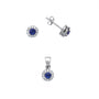 Silver CZ & Sapphire Round Earring Stud & Pendant Set Stone Type: Synthetic Created Sapphire