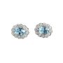 Also available in Platinum. Elegant looking stud earrings with Oval shape Aquamarine in the middle surrounded by Round brilliant cut Diamonds.