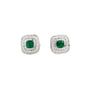 Also available in 18ct and platinum. A beautiful Stud earring with Cushion cut Emerald in the middle surrounded by Round Brilliant cut Diamonds.