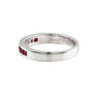 Also available in Platinum. Half Eternity ring has 9 Channel set Princess cut Rubies along the front of the band.