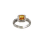 Also available in Platinum. A classic cluster ring having a Princess cut single stone Yellow Sapphire at the center with round brilliant cut Diamonds around it and on the shoulders.
