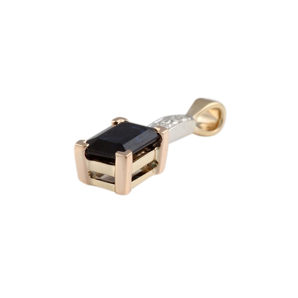 9ct Yellow and White Gold 0.04ct Round Brilliant and 1.05ct Emerald Cut Blue Sapphire Drop Pendant