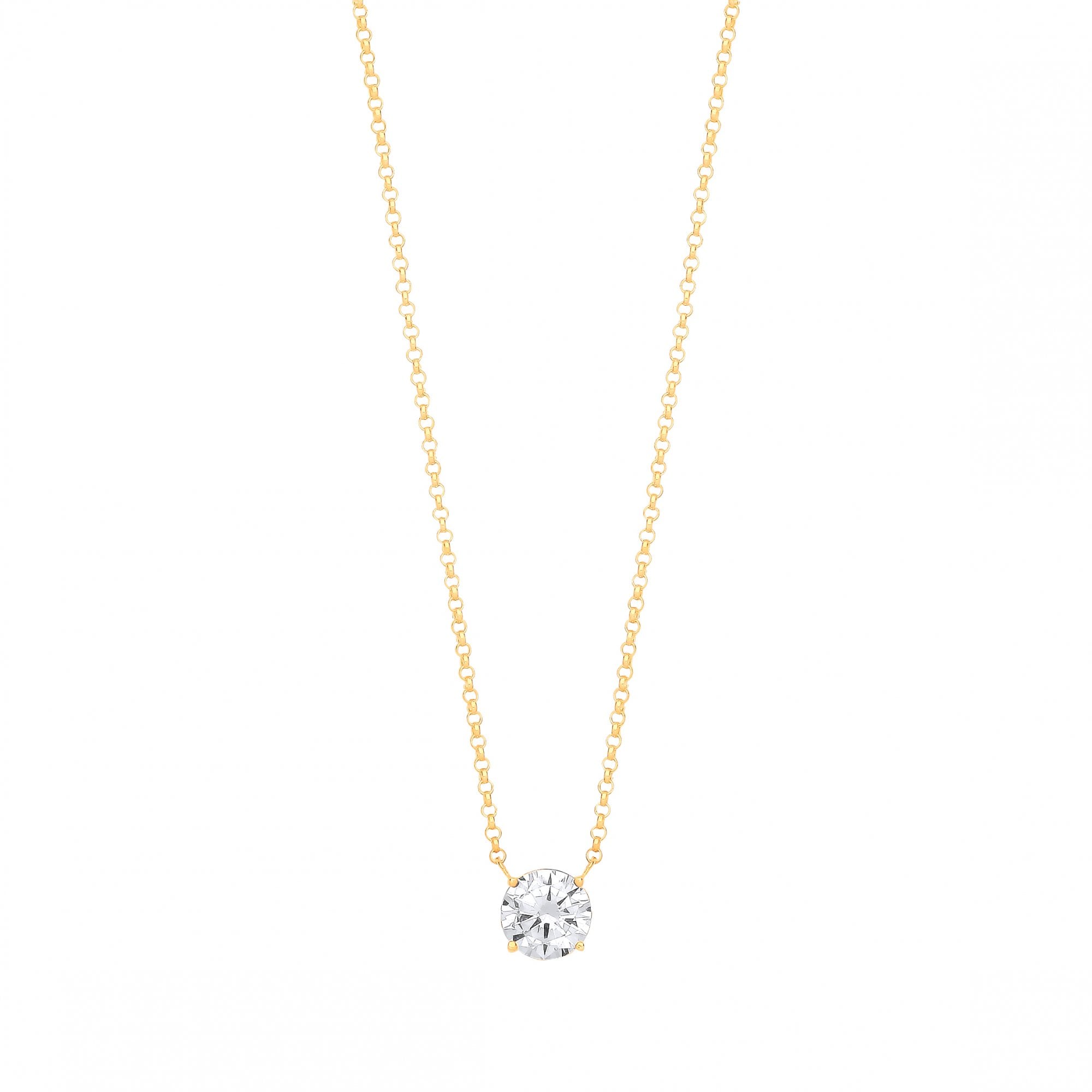 Gold Plated Necklace With 8mm CZ Round Pendant