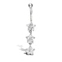 Enquiry about: Ladies 9ct White Gold White Round Brilliant Cubic Zirconia Flower Trilogy Dropper Banana Belly Bar, 10mm