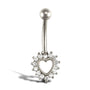 Ladies 9ct White Gold White Round Brilliant Cubic Zirconia Love Heart Banana Belly Bar, 10mm