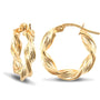 Ladies 9ct Yellow Gold Barked Platted Candy Twist 3.5mm Hoop Earrings 17mm