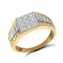 Men's Solid 9ct Yellow and White Gold White Round Brilliant Cubic Zirconia 9 Stone Square Cluster Signet Ring