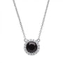 Rhodium Plated Silver Created Black Onyx and Cubic Zirconia Dainty Pendant Necklace