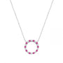 Silver CZ & Ruby Circle Pendant Necklace