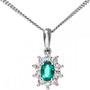 Enquiry about: SPARKLD 18ct White Gold Cluster Pendant + Chain, 0.35ct Diamond and Emerald, Round Brillliant