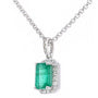 SPARKLD 18ct White Gold Octagon Emerald and 0.05ct Diamond Cluster Pendant Necklace