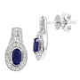 SPARKLD 18ct White Gold Oval Sapphire Cluster 0.15ct Diamond Drop Earrings