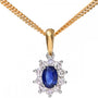 Enquiry about: SPARKLD 18ct Yellow Gold Cluster Pendant + Chain, 0.35ct Diamond and Sapphire, Round Brillliant