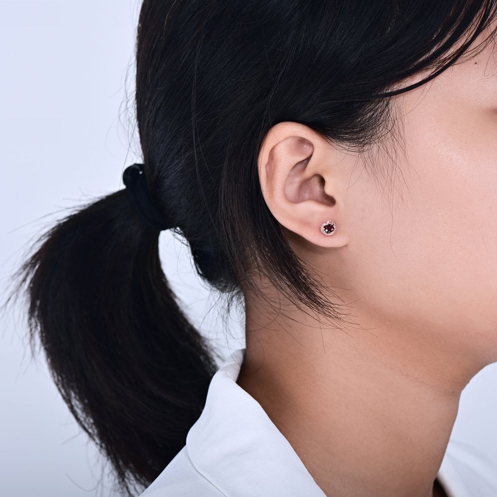 Enquiry about: SPARKLD 9ct Rose Gold Diamond and Garnet Heart Stud Earrings