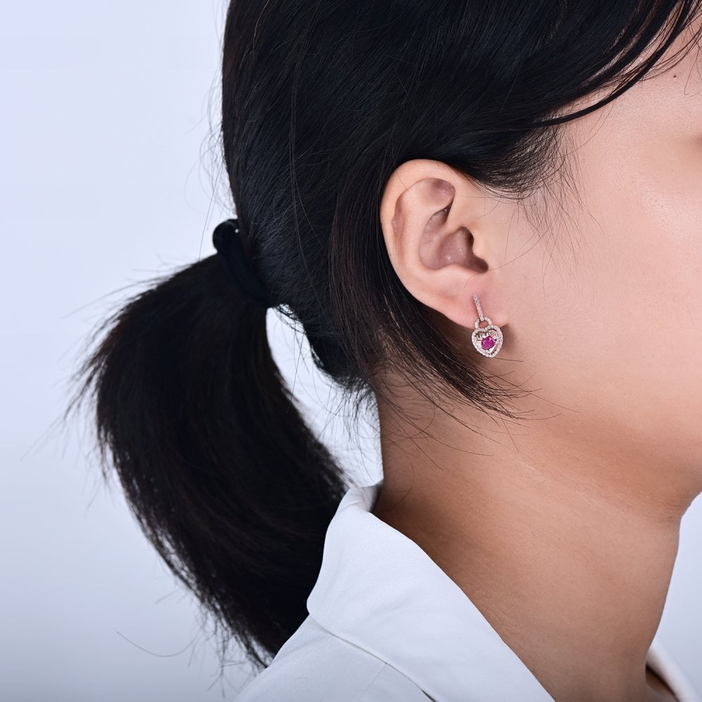 Enquiry about: SPARKLD 9ct Rose Gold Diamond and Ruby Heart Drop Earrings