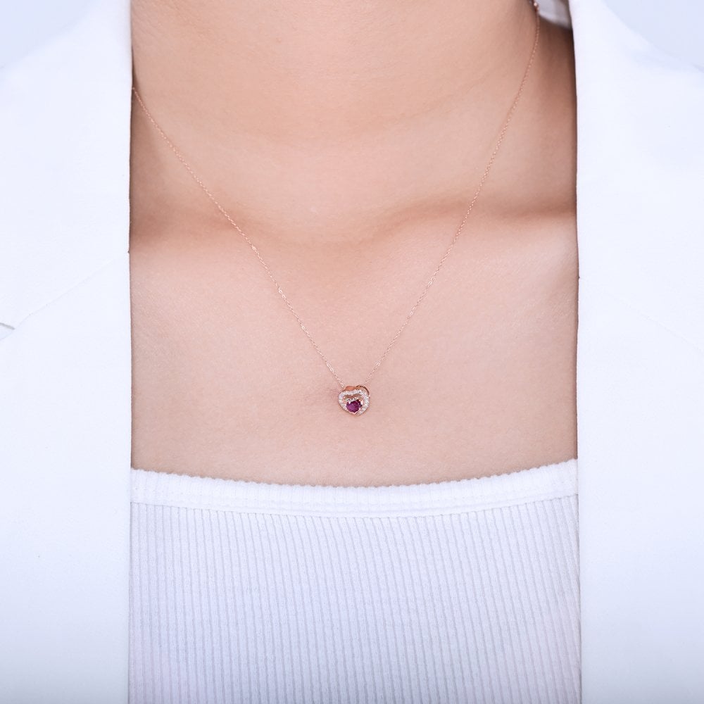 SPARKLD 9ct Rose Gold Diamond and Ruby Heart Pendant Necklace