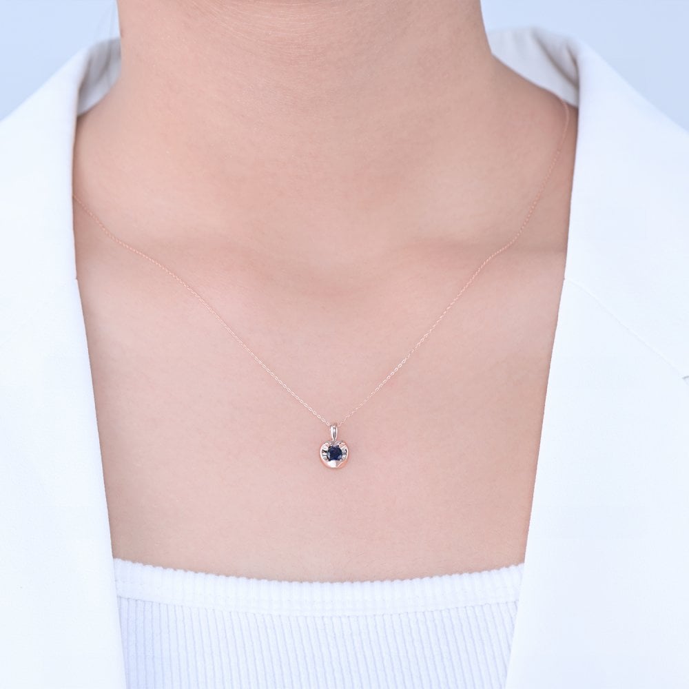 SPARKLD 9ct Rose Gold Sapphire Heart Pendant Necklace