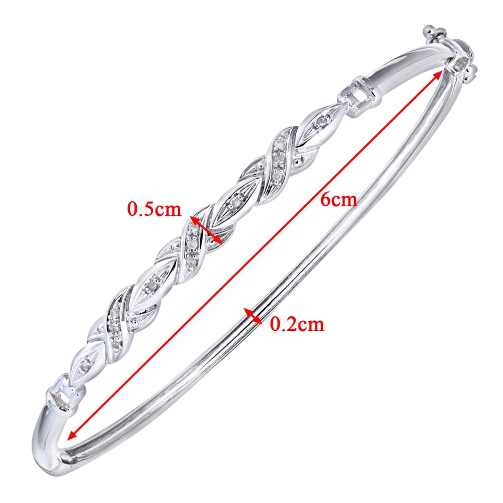 SPARKLD 9ct White Gold 0.06ct Diamond Crossover Bangle