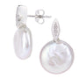SPARKLD 9ct White Gold Button Cultured Pearl and 0.01ct Diamond Stud Earrings