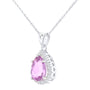 Enquiry about: SPARKLD 9ct White Gold Created Pink Sapphire Teardrop 0.07ct Diamond Halo Pendant Necklace