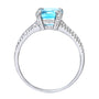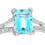 SPARKLD 9ct White Gold Emerald Cut Blue Topaz Ring with 0.07ct Diamond Shoulders