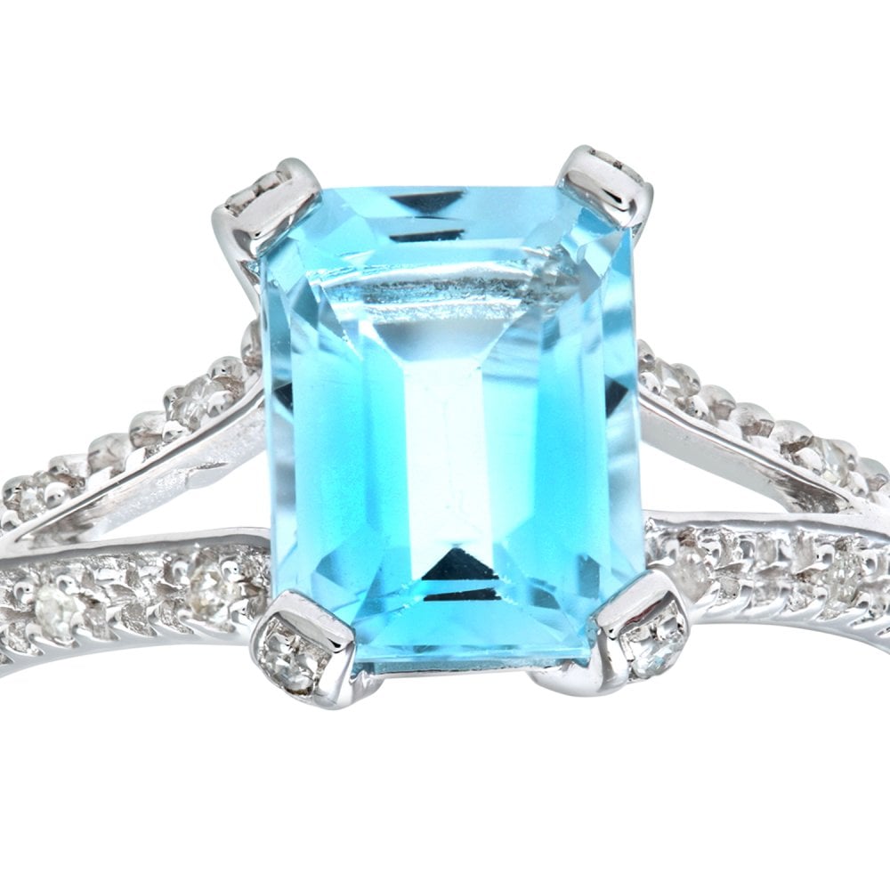Enquiry about: SPARKLD 9ct White Gold Emerald Cut Blue Topaz Ring with 0.07ct Diamond Shoulders