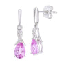 SPARKLD 9ct White Gold Oval Created Pink Sapphire Crossover 0.05ct Diamond Drop Earrings