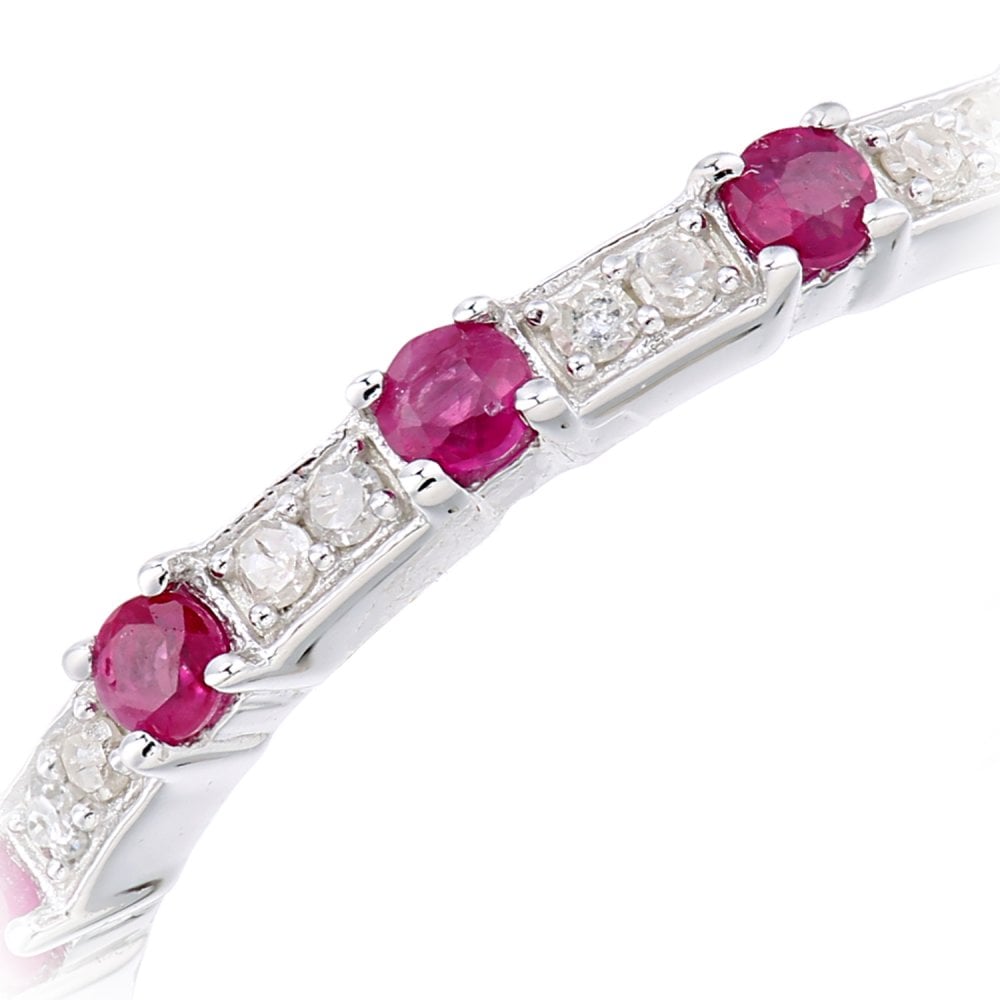 SPARKLD 9ct White Gold Women Round Ruby Eternity Ring