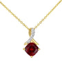 SPARKLD 9ct Yellow Gold Cushion Garnet Crossover 0.03ct Diamond Pendant Necklace