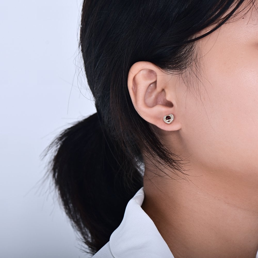 Enquiry about: SPARKLD 9ct Yellow Gold Diamond and Garnet Heart Stud Earrings