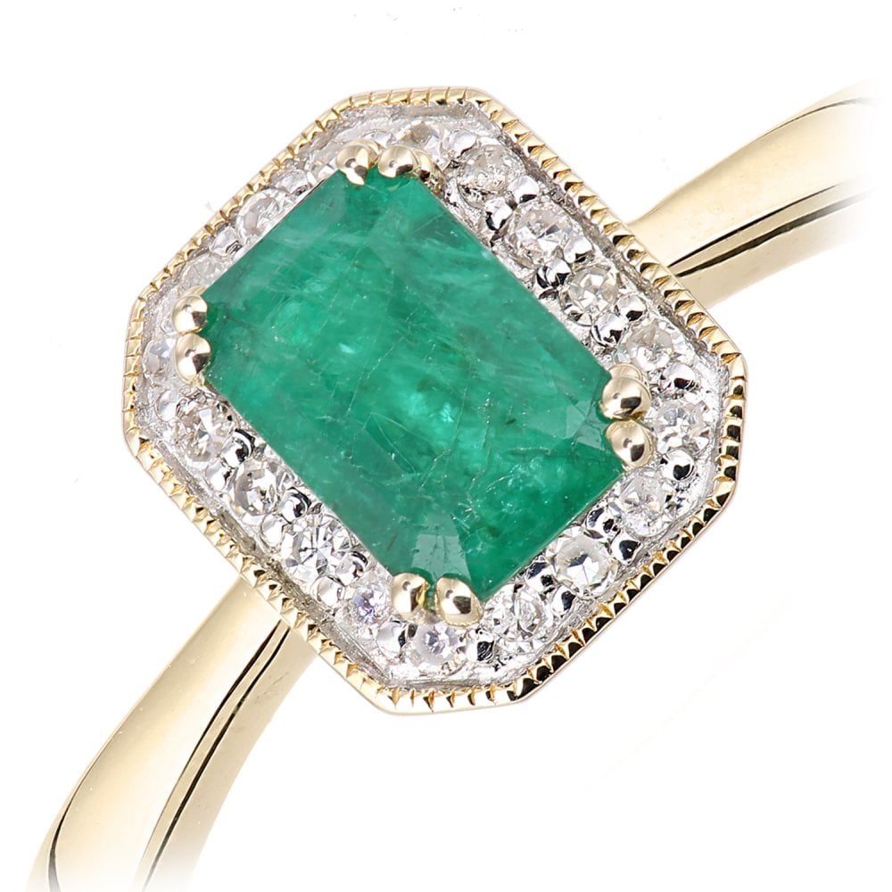 Enquiry about: SPARKLD 9ct Yellow Gold Octagon Emerald and 0.08ct Diamond Cluster Ring