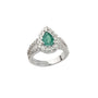 White Gold 0.51ct Round Diamond and 0.61ct Pear Emerald Set Cluster Ring