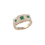 Yellow Gold 0.32ct Round Diamond and Emerald shaped Emerald Set Cluster Ring